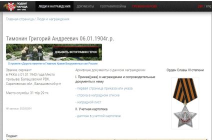За время боев на Криворожском направлении т. Тимонин вынес с поля боя 12 раненых красноармейцев и командиров под огнём противника и оказал 10 красноармейцам и командирам первую помощь»